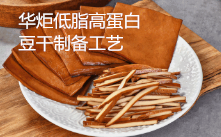 华炬新产品研究所技术咨询委员会科研人员现推荐一项低脂高蛋白豆干制备工艺方法,该技术制得的低脂高蛋白豆干呈黄色,表皮光滑,气孔细小均匀,弹性高,回弹快,口感爽口,蛋白质含量高,充满豆香味。制备的低脂高蛋白豆干油脂含量5%~7%,蛋白含量25%~30%。与传统工艺生产豆干相比分别降低了19%和提高了6%,符合现代饮食结构对低脂高蛋白营养健康的需求,现将该低脂高蛋白豆干制备工艺方法及实施例介绍如下供研究参考:(211211 316309)