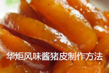 华炬新产品研究所技术咨询委员会科研人员现推荐一项风味酱猪皮制作方法步骤,该技术的有益效果:产品呈诱人的酱红色、色泽均匀;产品大小厚薄均匀,表面组织均一紧密,毛囊均匀不明显,软硬适中;入口滑润,不油腻,有嚼劲又不过硬;协调性好,色泽诱人,滋气味协调,口感良好,诱人食欲,对人的皮肤、筋腱、骨骼、毛发都有重要的生理保健作用,现将该风味酱猪皮制作方法步骤及实施例介绍如下供研究参考:(311211 344306)