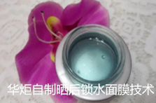 华炬科技新产品研究所技术咨询委员会科研人员现推荐一项自制晒后锁水面膜技术配方,该技术晒后锁水面膜为纯植物为原料,使用后给以为肌肤提供充足的水分,面膜中含有中含有大量的VA、VC和VE,可以有效补水、锁水、抑制黑色素形成、修复表皮细胞的晒后锁水面膜,现将该自制晒后锁水面膜技术配方及实施例介绍如下供研究参考:(411611 251309)