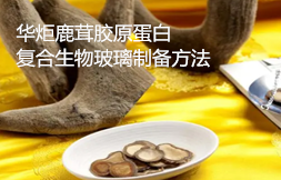 华炬新产品研究所技术咨询委员会科研人员现推荐一项鹿茸胶原蛋白复合生物玻璃制备方法,该技术提供了一种机械性能好,且具有优良的药物附着性的鹿茸胶原蛋白复合生物玻璃修复材料的制备方法。鹿茸胶原蛋白中含有促细胞生长因子和表皮生长因子,对修复机体和护养皮肤大有好处,现将该鹿茸胶原蛋白复合生物玻璃制备方法及实施例介绍如下供研究参考:(311771 223317)