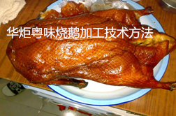 华炬新产品研究所技术咨询委员会科研人员现推荐一项粤味烧鹅加工技术方法步骤,该技术粤味烧鹅,所用的粤味调料酱含有鲜葱、鲜姜、食盐、白砂糖等用于淹渍原料,可以使原料鲜香、脆嫩、爽滑;粤味调料粉含有酱油粉、谷氨酸钠、食盐、小茴香粉、姜粉等鲜香成份,在制作菜淆时添加,使得所制作的菜淆味道鲜美、且带有广东菜的鲜、香、脆、嫩、滑风味,加之鹅肉本身营养丰富,因而,所加工的粤味烧鹅,营养丰富,味道鲜美,且具有广东风味,现将该粤味烧鹅加工技术方法步骤及实施例介绍如下供研究参考:(311371 521317)