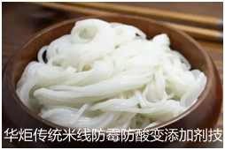 华炬新产品研究所技术咨询委员会技术人员现推荐一项传统米线防霉添加剂技术配方,该技术产品使用后可以缓解米线韧性,增加米线柔软度和酥软度,具有熟透迅速、均匀,耐煮不烂,爽口滑嫩,煮后汤水不浊,易于消化的特点,可以有效保持米线的营养成分,且制备米线可以较长时间保存,不用担心因为天气原因而米线生霉,现将该传统米线防霉添加剂技术配方介绍如下供研究参考:(371241 231313)