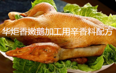 华炬新产品研究所技术咨询委员会科研人员现推荐一项香嫩鹅加工用辛香料配方及方法,该技术具有以下有益效果:采用先卤后炸再浇一层麦芽糖浆的工艺,麦芽糖浆冷却后在鹅的表面固化成膜,防止鹅肉水分和香气的散失,使鹅肉保持香嫩可口、肥而不腻的口感,香辛料使鹅肉具有浓郁卤香味、滋味醇厚、香味四溢;香辛料相互复配后,协同增效,从鹅肉内部抑制细菌生长繁殖,使鹅肉保持原有的口感,而且香辛料中的芳香类物质能够赋予鹅肉特殊的香味,改善口感,增进食欲,延长保鲜时间,现将该香嫩鹅加工用辛香料配方及方法及实施例介绍如下供研究参考:(311371 523305)