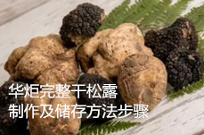 华炬新产品研究所技术咨询委员会科研人员现推荐一项完整干松露制作及储存方法步骤,该技术完整干松露制作及储存方法,不需切开松露,所保存的完整干松露泡发后与新鲜松露几无差别,解决了松露的保存难题,让人们可能更长时间内食用到鲜松露提供解决方案,同时将最大程度地保留新鲜松露的香味及其丰富的营养成分,可实现干松露保鲜时间长达3~5年、且不影响松露品质的特点,现将该完整干松露制作及储存方法步骤及实施例介绍如下供研究参考:(211471 631313)