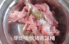 味精是一种常见调味品,其主要成分为谷氨酸钠,鲜味单调,只鲜无味,而且在西方白种人群食用,常会发生面颊部皮肤潮红过敏。华炬新产品研究所技术咨询委员会科研人员现推荐一项传统猪肉味精及其生产工艺,该技术传统猪肉味精营养丰富,富含18种氨基酸,尤其是富含7种人体必须的氨基酸,动、植物蛋白均衡,极易消化吸收,且具有香气浓郁、持久,能明显提高和改善产品质量,鲜香味纯正,可增强人们的饮食兴趣,促进食欲,特别适合老人、儿童和病友们的食用,具有广阔市场前景,现将该传统猪肉味精及其生产工艺及实施例介绍如下供研究参考:(311211 311321)