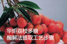华炬新产品研究所技术咨询委员会科研人员现推荐一项荔枝多糖酶解法提取工艺步骤,该技术与现技术相比优点是;其提取工艺中,采用酶解工艺技术,并提供酶解的时间、温度和酶用量,以保障了酶解的成功,使荔枝浆液除保持了原有高品味的特点外,一则使原浆容易过滤;另则是提高了其功能性食品、饮品的有效成份活性,从而最大限度的获取提高其功效的作用,使得食品、饮品融入人们生活中,现将该荔枝多糖酶解法提取工艺步骤及实施例介绍如下供研究参考:(241441 241326)