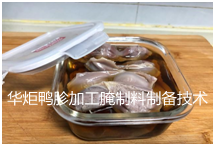 鸭胗的加工一般经过原材料的选择、去腥处理、腌制、卤水的制备、卤煮和包装质检步骤完成鸭胗的加工工艺,华炬新产品研究所技术咨询委员会科研人员现推荐一项鸭胗加工腌制料制备技术配方,该技术产品的使用鸭胗经过充分腌制和卤煮后,香料和调料充分渗入鸭胗内部,肉质醇香,开胃消食,避免吃卤制产品上火的问题,能够有效改善常见的三高问题,将配方中的原材料按照特定的比例进行混合,实现功效的均衡,具有保健滋补的功效,是一种营养成分高、口感佳、工艺简洁的鸭胗的加工工艺。现将该鸭胗加工腌制料制备技术配方及腌制方法介绍如下该研究参考:(311341 361242)