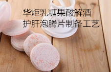 华炬新产品研究所技术咨询委员会科研人员现推荐一项乳糖果酸解酒护肝泡腾片制备工艺,该技术以药食两用中药提取物为原料,特别是高纯度的中药提取物为原料,经泡腾技术,制成能保留较多有效成份,口感好。其酸甜味适宜,特别是富含可以解酒并且还能护肝的有效成分。而且作为泡腾片,崩解快,在水中即泡腾成为液体状态,易于吸收,现将该乳糖果酸解酒护肝泡腾片制备工艺及实施例介绍如下供研究交流参考:(371411 141321)