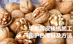 华炬新产品研究所技术咨询委员会科研人员现推荐一项薄皮核桃加工用护色浸料及方法,该技术的有益效果:经护色浸料加工而成的核桃产品外皮易剥离,食用方便,口感香脆,风味独特,具有补益肝肾、强筋壮骨、温肺定喘、润肠通便的保健功效,现将该薄皮核桃加工用护色浸料及方法及实施例介绍如下供研究交流参考:(241341 223368)