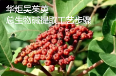 吴茱萸是芸香科植物吴茱萸干燥近成熟果实,其味苦辛、性温热、有小毒;能温中散寒、疏肝止痛。用于厥阴头痛、腹脘冷痛、呕吐泄泻、痛经、高血压等症。主要含多种生物碱、挥发油、苦味素等化学成分。研究表明吴茱萸的提取物主要为生物碱、挥发油、苦味素等化学成分,而且也有研究表明这些化学物质在抗实验性胃溃疡、镇痛和抑制体温上升、抗血栓形成、抗肿瘤作用等方面起着重要的作用。但是,目前的吴茱萸生物碱的提取方法主要存在产量低、流程时间长等不足。