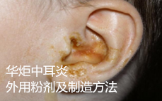 中耳炎是一种常见病,一般人特别是婴幼儿和少年儿童常因耳道外伤,进入异物或耳道流入水、奶液等原因,感染中耳炎,如不及时治疗常常导至鼓膜损坏,造成失聪,甚至引起其它并发症,现有的治疗方法多是采用综合消炎措施,比较麻烦,见效慢,愈后又常常反复。华炬新产品研究所技术咨询委员会科研人员现推荐一项中耳炎外用粉剂及制造方法,该技术由猪苦胆、冰片等三味中药加工而成,是一种制作简便、疗效显著的治疗中耳炎的外用粉剂,现将该中耳炎外用粉剂及制造方法及实施例介绍如下供研究交流参考:(411671 651312)