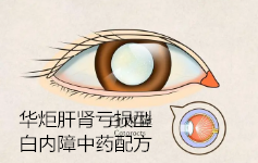 白内障晶状体混浊称为白内障。老化、遗传、代谢异常、外伤、辐射、中毒和局部营养不良等可引起晶状体囊膜损伤,使其渗透性增加,丧失屏障作用,或导致晶状体代谢紊乱,使晶状体蛋白发生变性,形成混浊。肝肾亏损型白内障常伴有:白内障初期,晶状体混浊,视物模糊,伴见头晕耳鸣,腰膝酸软,舌淡脉细。