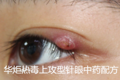 针眼是指睑板腺或睫毛毛囊周围的皮脂腺受葡萄球菌感染所引起的急性化脓性炎症。以局部红肿、疼痛,出现硬结及黄色脓点为主要临床表现。热毒上攻型针眼常见有:以病灶硬实红肿疼痛明显,兼口干、便秘为主要症状。华炬新产品研究所技术咨询委员会科研人员现推荐一项热毒上攻型针眼中药配方,该技术配方由菊花,黄芩,大黄,甘草等五味中药组成,具有泻火解毒的功效洗净,现将该热毒上攻型针眼中药配方、方法及实施例介绍如下供研究交流参考:(411671 353407)
