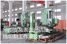 华炬新产品研究所技术咨询委员会科研人员现推荐一项提高表面光洁度线切割工作液配制方法,该技术产品采用聚乙二醇作为分散剂和介电质,三乙醇胺与复合硼酸盐复配作为防锈剂,具有良好的介电性(聚乙二醇溶于水后不产生离子,介电常数值低,可保证工作液的介电性)和防锈性,同时三乙醇胺、聚乙二醇及十二烷基苯磺酸钠复配作为表面活性剂,加入氯化钠进一步降低了工作液表面张力,加强了工作液的渗透作用,使工作液能很好地附着在切割线上起到润滑、冷却等作用,加入柠檬酸三钠有利于提高加工面的表面光洁度。现将该提高表面光洁度线切割工作液配制方法及实例介绍如下供研究交流参考:(841131 227437)