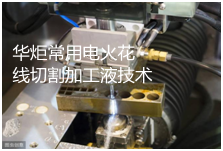 随着金属加工业的发展,电火花线切割技术应用更加广泛。电火花线切割工具有许多独特的优点,它可以加工其他工具无法加工或难以加工的各种形状复杂的工件。但电火花线切割需要在电火花线切割加工液中进行,其性能才能稳定,否则,其切割速度、加工精度、表面粗糙度等工艺指标都受到很大影响。因此,对电火花线切割加工液的要求也越来越高。电火花线切割加工液主要由润滑剂、防锈剂、表面活性剂、爆炸剂及抗氧抗腐剂等组成,其主要性能要求为:具备一定的绝缘性、快速电离和消电离性、良好的防锈性、良好的润滑性、良好的黏性、良好的冷却性、良好的洗涤性和良好的抗氧抗腐性。电火花加工是在一定的介质中,利用工具电极和工件电极之间脉冲性火花放电时的电腐蚀现象对材料进行加工,以达到一定的形状尺寸和表面粗糙度要求的加工方法。在液体介质小间隙中进行单个脉冲放电时,材料的电腐蚀过程大致可分为介质的击穿、通道的形成、能量的转换和传递、电蚀产物的抛出三个连续的过程。在对导电工件进行成型加工时,两电极间必须充满液体介质,这种液体介质即为前述的电火花工作液。