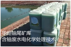 华炬新产品研究所技术咨询委员会科研人员现推荐一项铀尾矿库含铀废水电化学处理技术方法,铀矿开采与冶炼排放废水多为强酸性(pH为2.0—3.0),该技术向含铀废水中直接投加铀酰离子的有机配体偶氮砷Ⅲ而无需调节废水pH值,即可实现铀酰离子高活度条件与有机配体的螯合反应;该技术采用廉价铁阳极电解水产生氢氧根离子(OH-)而形成Fe(OH)3絮凝前驱体,反应速率快且无需调节废水pH; Fe(OH)3可高效絮凝铀酰-有机配体螯合物,实现含铀废水的达标治理。电絮凝过程废水颜色逐步由蓝色变为无色,亦可通过水体颜色变化判定絮凝反应完成情况。沉淀获得的絮体,便于后续工艺处理实现铀的分离、回收,现将该铀尾矿库含铀废水电化学处理技术方法及实例介绍如下供研究交流参考:(611511 521445)