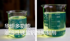 华炬新产品研究所技术咨询委员会科研人员现推荐一项多功能油溶性镁盐钒蚀抑制剂,该技术产品抑制钒腐蚀、硫腐蚀、氮腐蚀效果明显,燃后所留灰分结构疏松,易于吹扫、清洗,能很好地适用于以重油(或原油、渣油)为燃料的燃气轮机电厂,大大降低叶片腐蚀,增加机组的使用寿命。该多功能油溶性镁盐钒蚀抑制剂。它不但具有抑制钒对燃气轮机叶片腐蚀的作用,而且具有清净作用和酸中和作用,使燃烧后所留灰分更易除去,并能抑制燃烧时硫、氮等元素引起的酸性腐蚀,现将该多功能油溶性镁盐钒蚀抑制剂及实施例介绍如下供研究交流参考:(511271 233403)