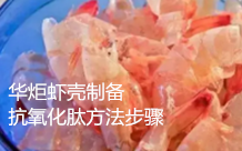 华炬新产品研究所技术咨询委员会科研人员现推荐一项虾壳制备抗氧化肽方法步骤,该技术利用物理和生物技术制备方法简单,原料丰富易得,所用虾壳为虾类加工的副产物,成本低廉,增加了虾类产品的附加值,并且避免了对环境造成污染,工艺简单成熟,设备简单,制备时间短,操作方便、连续性好,生产高效,产品形态理想,无污染,适用于工业化生产,原料来源广泛易得,节约了能源,便于普及和推广,现将该虾壳制备抗氧化肽方法步骤及实施例介绍如下供研究交流参考:(341311 561432)