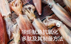 华炬新产品研究所技术咨询委员会科研人员现推荐一项鱿鱼抗氧化多肽及其制备方法,该技术克服现有技术中鱿鱼抗氧化多肽的研究和制备工艺的缺陷和不足,提供一种利用可控酶解技术针对性制备鱿鱼抗氧化多肽的方法,该方法酶解条件简单可控,反应条件温和,且避免了常规酸水解对产品的污染,酶解产物的种类和含量更加稳定,抗氧化肽得率高,功能性强,易于工业化生产,为鱿鱼的深加工利用开辟了新途径,现将该鱿鱼抗氧化多肽及其制备方法及实施例介绍如下供研究交流参考:(341211 525457)
