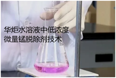 针对上述技术问题华炬新产品研究所技术咨询委员会科研人员现推荐一项水溶液中低浓度微量锰脱除剂技术配方,该技术产品的应用可以有效脱除水溶液中微量锰,可用于治理工业废水,同时兼顾经济节约和环境保护,它可以减少浪费,提高低浓度锰的脱除率,降低成本,同时减少环境污染。该技术产品所用原料经济易得,未向体系中添加任何有害元素,废水处理时间短,试剂用量少,废渣产生量少,处理后的水溶液中锰含量小于0.01mg/L,可排入二级管网。因此是一种环境友好型处理工艺。该工艺可广泛应用于金属加工业、电镀业、 机械制造业、制革业和纺织业等领域所排放的含锰废水的处理,现将该水溶液中低浓度微量锰脱除剂技术配方及方法介绍如供研究交流参考下:(541511 311545)