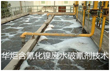 华炬新产品研究所技术咨询委员会科研人员现推荐一项含氰化镍废水破氰剂配方及处理技术工艺,该技术采用破氰剂替代传统的次氯酸钠进行破氰,避免了镍的氧化,减少了药剂的消耗,最终排放的废水中盐的含量也会相应大大减少,同时由于氰化镍废水中的氰来自氰化镍镀铜线,因此含有铜离子,正好成为了双氧水破氰的良好催化剂,加速了破氰反应的进行,从而提高了废水的处理效率且降低了成本,现将该含氰化镍废水破氰剂配方及处理技术工艺实例介绍如下供研究交流参考:(541511 411426)