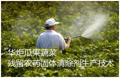 华炬新产品研究所技术咨询委员会科研人员现推荐一项瓜果蔬菜残留农药固体清除剂生产技术,该技术产品在干燥情况下,稳定性良好;在洗涤的全部过程中都有气体产生、无色、无味,保持水溶液清洁;保持瓜果、蔬菜的完好。是一种携带方便、能够去除瓜果、蔬菜上的残留农药、化肥的瓜果、蔬菜残留农药固体清除剂,现将该瓜果蔬菜残留农药固体清除剂生产技术实例介绍如下供研究交流参考:(211311 521485)