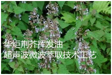 华炬科技新产品研究所技术咨询委员会科研人员现推荐一项荆芥挥发油超声波微波萃取技术工艺方法,该技术采用微波和超声波技术有机的结合起来,一方面,微波的的高能作用使植物细胞中的水分和有机溶剂升温升压,细胞壁穿孔,提高荆芥挥发油的溶出效率;同时,超声波的机械振动作用和空化作用促进细胞的破裂,进而加速了荆芥挥发油的提取效率,所以,二者结合可以缩短提取时间,提高荆芥挥发油的提取率,是一种工艺简单、节能、省时、得率高且产品品质佳的从荆芥中提取挥发油的方法,现将该荆芥挥发油超声波微波萃取技术工艺方法实例介绍如下供研究交流参考:(441271 235225)