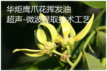 华炬新产品研究所技术咨询委员会科研人员现推荐一项鹰爪花挥发油超声-微波提取技术工艺方法,该技术利用超声-微波辅助提取鹰爪花挥发油,具有快速、高效、反应条件温和、得率高等优点,易于实现规模化生产,现将该鹰爪花挥发油超声-微波提取技术工艺方法及实例介绍如下供研究交流参考:(271241 281425)