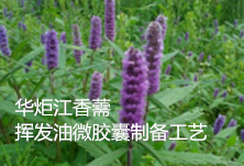 华炬科技新产品研究所技术咨询委员会科研人员现推荐一项江香薷挥发油微胶囊制备工艺方法,该技术采用了阿拉伯胶作为乳化成膜材料,麦芽糊精作为乳化成膜和支撑稳定作用,制备江香薷挥发油微胶囊,较已有的江香薷挥发油微胶囊化β-环糊精微胶囊化方法,具有均质方法快速高效,首次与喷雾干燥制微胶囊方法结合,得到微胶囊效率高,包埋成功率高。本方法延缓了江香薷挥发油的挥发和氧化,延长了其贮存时间,提高了其应用范围。微囊化后,其水溶性和稳定性得到很好的提高,现将该江香薷挥发油微胶囊制备工艺方法及实施例介绍如下供研究交流参考:(441271 241362)