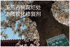 玉兰古树是指生长百年以上的老树,古树经过漫长的岁月,其树干难免会有人为或自然因素造成的伤口,如果不及时处理,伤口长期外漏会受环境影响逐渐腐烂、形成树洞,严重会导致树干中空,水皮破裂,进而影响水分和养分的运输和贮存,导致病菌进一步繁衍,扩大溃烂面积,缩短古树的寿命。华炬新产品研究所技术咨询委员会科研人员现推荐一项玉兰古树腐烂处木质软化修复剂及技术方法,该技术产品对玉兰木质有较强的软化作用,喷涂于古木腐烂处,能快速渗入古木内部,并起到较好的软化作用,有较强的防腐、杀菌、驱虫效果,喷涂于清理后的腐烂处,能够防治霉菌、病菌再次深层入侵古木,以起到更好的防虫、防腐、杀菌效果,能够起到较好防水、防晒效果,避免腐烂处再次受到外界环境侵蚀。现将该玉兰古树腐烂处木质软化修复剂及技术方法介绍如下供研究交流参考:(271211 335365)