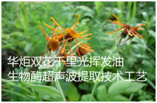 华炬科技新产品研究所技术咨询委员会科研人员现推荐一项双花千里光挥发油生物酶超声波提取技术工艺方法,该技术利用复合酶采用自然发酵法,有效地破坏了植物的细胞结构,减少了细胞内成分溶出的屏障;双频超声提取减少了驻波所造成的死角,充分利用超声的空化效应、热效应和机械振动等作用,加速了有效成分进入溶剂,提高提取率,缩短提取时间,简化了操作步骤,工艺简单、提取率高、溶剂用量少且易于回收,现将该双花千里光挥发油生物酶超声波提取技术工艺方法实例介绍如下供研究交流参考:(441221 263225)