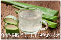 芦荟汁的加工技术有传统的鲜汁榨取法、溶剂提取法和超临界二氧化碳萃取法等等,一般都会采用清洗、粉碎过滤、脱色、分离、灭菌等几个工艺步骤,为了制备外观为无色透明的芦荟汁液,华炬科技新产品研究所技术咨询委员会科研人员现推荐一项提取芦荟汁用脱色剂技术配方,该技术产品的使用既能达到脱色效果,同时几乎对芦荟汁液或芦荟凝胶浓缩液的有效成分不产生影响,全面地保留芦荟汁液中的天然活性成份,实现特纯芦荟汁、高活性芦荟汁产品等色泽和生物活性稳定性好的芦荟制品的工业化生产。现将该提取芦荟汁用脱色剂技术配方介绍如下供研究交流参考:(441231 271253)