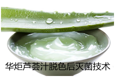 芦荟汁的加工技术有传统的鲜汁榨取法、溶剂提取法和超临界二氧化碳萃取法等等,一般都会采用清洗、粉碎过滤、脱色、分离、灭菌等几个工艺步骤,华炬科技新产品研究所技术咨询委员会科研人员现推荐一项芦荟汁提取脱色后灭菌技术工艺,该技术芦荟汁灭菌技术工艺,能将芦荟汁液中的革兰氏阴性菌、阳性菌、霉菌、酵母菌等基本或全部杀灭、几乎对芦荟汁液或芦荟凝胶浓缩液的有效成分不产生影响,全面地保留芦荟汁液中的天然活性成份,实现芦荟汁、高活性芦荟汁产品等芦荟汁生物活性稳定性好的芦荟制品的工业化生产。现将该芦荟汁提取脱色后灭菌技术工艺介绍如下供研究交流参考:(441231 271475)