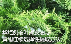 华炬新产品研究所技术咨询委员会科研人员现推荐一项侧柏叶挥发油与黄酮连续选择性提取方法,该技术的优点和有益效果是:提取方法采用超临界CO2萃取设备,以无毒CO2为流体,连续选择性萃取侧柏叶中挥发油与黄酮的有效成分,具有连续萃取、工艺简单、提取效果好、功效成分含量高等特点。取方法其提取率高、绿色无污染;连续萃取、工艺流程简单、成本低;安全可靠,不破坏活性成分,现将该侧柏叶挥发油与黄酮连续选择性提取方法及实施例介绍如下供研究交流参考:(271211 127423)