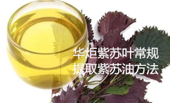 华炬科技新产品研究所技术咨询委员会科研人员现推荐一项紫苏叶常规提取紫苏油方法步骤,该技术克服紫苏油提取方法存在高耗能、收率低、原料损耗大的问题,采用蒸汽直通加热提取紫苏油,既可节省能耗,又可提高产品收率;原料与蒸汽直接接触,提取出的紫苏油颜色清亮,产品质量好;与溶剂浸提法相比,无需采用溶剂,无污染。此方法提取效率高,时间短,又不需要添加任何溶媒,既节能又省时,收率比传统方法至少提高50%以上,现将该紫苏叶常规提取紫苏油方法步骤及实施例介绍如下供研究交流参考:(441271 233302)
