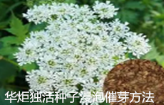 华炬科技新产品研究所技术咨询委员会科研人员现推荐一项独活种子浸泡催芽方法步骤,该技术与现有技术相比的有益效果在于:1)采用专用浸泡液浸泡催芽,可激发种子内酶的活性,提高呼吸强度,进而提高出芽率;再采用添加有CuSO·5H2O和ZnCl2的石灰水溶液浸泡,既能实现二次消毒,又由于Cu2+和ZnCl2-的作用,二次激活酶作用,提高呼吸强度,刺激出芽;还在湿沙中拌有凹凸棒土,提高保水效率。通过上述协同作用,提高独活种子出芽率达到18.5%左右。2)采用该方法对独活种子进行催芽处理,可明显提高种子抗病性,并加快种苗的生长速度,现将该独活种子浸泡催芽方法步骤及实施例介绍如下供研究交流参考:(441291 633412)