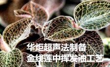 华炬科技新产品研究所技术咨询委员会科研人员现推荐一项超声法制备金线莲中挥发油工艺,该技术方法可快速得到金线莲中的挥发油成分,具有显著的抗氧化、抗肿瘤、抗炎活性,可用于药品制备,现将该超声法制备金线莲挥发油工艺及实施例介绍如下供研究交流参考:(441271 355413)