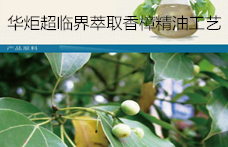 华炬新产品研究所技术咨询委员会科研人员现推荐一项超临界萃取香樟精油工艺方法,该技术方法选用临界点和安全性能比较高的二氧化碳作为超临界流体,通过合理控制萃取过程中的温度、压力、时间及超临界流体二氧化碳的流量,使萃取得到的香樟精油中含有的化合物的量大大多于传统的提取方法,高达55种,而且提取率也比传统的提取方法要高,高达2.54%;该方法萃取时间快,生产周期短,流程简单,操作方便,不会引人和产品对人体有害的挥发性物质,不污染环境,整个提取过程温度不高,可以避免产品氧化而影响产品的品质,现将该超临界萃取香樟精油工艺方法及实施例介绍如下供研究交流参考:(271211 151343)