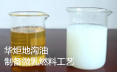 华炬新产品研究所技术咨询委员会科研人员现推荐一项地沟油制备微乳燃料工艺方法,该技术与相关技术相比制备微乳燃料的方法有益效果在于:一、以地沟油为主要原料,并进行地沟油酯化反应后,与甲醇、乳化剂复配形成地沟油微乳化燃料,其热值为28-35MJ/Kg,能完全替代工业锅炉、柴油燃烧设备等对燃料的需求。二、制备得到的地沟油微乳燃料属于清洁燃料,具有低硫、无积碳等特点;其中地沟油的处理简单,经过粗过滤、精过滤、油水简易分离即可,无需深度蒸发除水,节约能源,现将该地沟油制备微乳燃料工艺方法及实施例介绍如下供研究交流参考:(611241 255404)