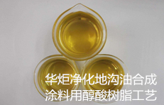 华炬新产品研究所技术咨询委员会科研人员现推荐一项净化地沟油合成涂料用醇酸树脂工艺,该技术方法制备的用净化地沟油合成涂料用醇酸树脂原料成本低,树脂的各项性能符合要求。合成的醇酸树脂主要用于生产双组份聚氨酯木涂料、氨基烘漆等。开创了地沟油的一条新用途,变废为宝,既降低了涂料用醇酸树脂的成本,又减 少了地沟油流入攴桌的危险,利国利民,制得的用净化地沟油合成涂料用醇酸树脂的质量指标检测如下:外观 棕色透明液体;粘度 300-400S(涂-4);酸值 10-15mgKOH/g;固含 58-62% 。现将该净化地沟油合成涂料用醇酸树脂工艺及实施例介绍如下供研究交流参考:(371541 721415)