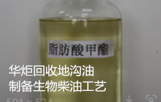 华炬新产品研究所技术咨询委员会科研人员现推荐一项回收地沟油制备生物柴油工艺方法,该技术方案如下:按重量百分比,将地沟油、酸性催化剂和甲醇加入反应釜内,进行酯化反应;反应完成后,将液体静置或进行离心分离,上层即为制备的生物柴油(含少量甲醇),下层为甘油和过量甲醇;在上述生物柴油粗品中中和得到水洗粗酯,之后加入工业纯碱进行加热蒸馏,收集气相成分,即为精制的生物柴油-脂肪酸甲酯,现将该回收地沟油制备生物柴油工艺方法及实施例介绍如下供研究交流参考:(611241 255419)