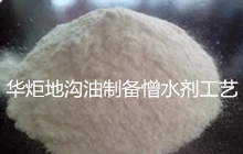 华炬新产品研究所技术咨询委员会科研人员现推荐一项地沟油制备憎水剂工艺方法,该技术能够达到以下效果:1、不挥发物含量≥60%,国标为≥45%,JC/T902-2002《建筑表面用有机硅防水剂》;2、渗透高度≤20mm,国标为≤35mm,JC/T1018-2006《水性渗透型无机防水剂》;3、形成的憎水层的表面与水的接触角(或润湿角)可达θ为150~160°;4、18个月内流动性好,凝结较少,稳定性好。是一种防水效果好、制备方法简单、原料易得、投资少、收益高的新技术,现将该地沟油制备憎水剂工艺方法及实施例介绍如下供研究交流参考:(541311 221465)
