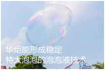 市场上的泡泡产品吹出的泡泡大多在2cm-20cm。配方为水、胶体、表面活性剂、保湿剂、芳香剂、防腐剂。对于直径1-2米的大泡泡,由于空气尘埃、水分挥发、重力、风的影响,传统配方无法胜任。如果能减弱这些因素的作用无疑会生成稳定的大泡泡。最直接的方法是增加泡膜的厚度,但过重的泡泡反而对泡膜形成拉扯而迅速破裂。
