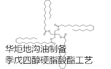 华炬新产品研究所技术咨询委员会科研人员现推荐一项地沟油制备季戊四醇硬脂酸酯工艺方法,该技术的有益效果是:1.采用地沟油作为主要原料,代替传统硬脂酸制备原料——棕榈油,不仅可使地沟油得到充分的利用,还可大幅度成品季戊四醇硬脂酸酯的生产成本,从而在解决现有的地沟油存在安全和环保隐患问题的同时,又可有效的降低季戊四醇硬脂酸酯的制备成本。2.制得的成品季戊四醇硬脂酸酯得率高,纯度高,现将该地沟油制备季戊四醇硬脂酸酯工艺方法及实施例介绍如下供研究交流参考:(511341 321409)