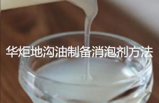 华炬新产品研究所技术咨询委员会科研人员现推荐一项地沟油制备消泡剂方法步骤,该技术的有益效果是: (1)充分使用地沟油,实现了地沟油资源的充分利用; (2)明易于操作,成本低; (3)所制的消泡剂一种相容性好、易于乳化分散,且无挂壁缺陷,现将该地沟油制备消泡剂方法步骤及实施例介绍如下供研究交流参考:(511521 621405)