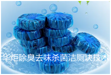 抽水马桶已经走进了千家万户,长时间的使用会使马桶釉面上结上一层污垢,一般用清水很难清除,而且卫生间容易产生异味,市面上的洁厕剂虽然可以有效的去处釉面上的污垢,但是没有去味杀菌的作用。华炬新产品研究所技术咨询委员会科研人员现推荐一项除臭去味杀菌洁厕块技术配方,该技术产品使用后可以使卫生间里留有清香,同时还能有效的杀死各种病菌,并且其去污能力也绝不逊于现在市面上已有的洁厕剂,现将该除臭去味杀菌洁厕块技术配方及实例介绍如下供研究交流参考:(571241 251445)