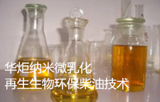 华炬新产品研究所技术咨询委员会科研人员现推荐一项纳米微乳化再生生物环保柴油技术,该技术的主要优势有以下几方面:1、区别于其他微乳化柴油,巧妙将纳米分散组装技术结合生化柴油制备技术结合,利用地沟油等废旧料为主要原料制作纳米微乳化再生生物环保柴油。2、推广使用方便,由于有优良的互溶性、分散性,可独立或任意比例和柴油一起使用,不分层不浑浊,简单方便。3、节能明显,微乳液加入水10-25%,所以节油率10-25%以上。因为使用材料价格都低于柴油价格,节油产生的经济效益更大,现将该纳米微乳化再生生物环保柴油技术及实施例介绍如下供研究交流参考:(611241 255414)
