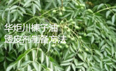 华炬科技新产品研究所技术咨询委员会科研人员现推荐一项川楝子油透皮剂制备方法步骤,该技术的有益效果是:川楝子油具有明显的抗炎、抗菌、抗病毒、保护肝细胞与免疫调节等多方面的药理活性。对于局部炎症如静脉炎有较好效果,还可以用于治疗慢性肝炎及肝癌等。川楝子油透皮剂的制备方法,操作简单,所制备载有中药混合物的壳聚糖微球可透过皮肤直达病灶,并在炎症部位维持较高的药物浓度,提高药物生物利用度,提高机体免疫能力,缓解局部症状,见效快,持续时间长,使用方便,实用性强;适合规模化工业生产的需要,现将该川楝子油透皮剂制备方法步骤及实施例介绍如下供研究交流参考:(441231 545415)