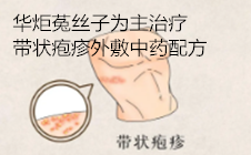 带状疱疹是由水痘带状疱疹病毒引起的急性炎症性皮肤病,中医称为"缠腰火龙"“缠腰火丹”,俗称"蜘蛛疮"。其主要特点为簇集水泡,沿一侧周围神经作群集带状分布,伴有明显神经痛。初次感染表现为水痘,以后病毒可长期潜伏在脊髓后根神经节,免疫功能减弱可诱发水痘带状疱疹病毒可再度活动,生长繁殖,沿周围神经波及皮肤,发生带状疱疹。带状疱疹患者一般可获得对该病毒的终生免疫。现在治疗带状疱疹大都采用营养神经口服或肌注B族抗生素以及抗病毒药物泛昔洛韦片、万乃洛韦、无环鸟苷、聚肌胞、干扰素等等,辅助口服去痛片等镇痛药片。这些治疗带状疱疹的西药都不同程度地存在一定的毒性,容易产生不可预料的副作用。使用不当时,疗效差、治疗周期长。中药学上所说的菟丝子为旋花科植物菟丝子或大菟丝子的种子。主要成分含糖甙、β-胡萝卜素、γ-胡萝卜素、维生素A类物质等。类球形或卵形,略扁,直径1~1.5mm。表面灰棕色或红棕色,具细密突起的小点,一端有微凹的线形种脐。质坚硬,除去种皮,可见卷旋状的胚。菟丝子性味辛甘平,可补肝肾,益精髓,养肌强阴,坚筋骨,益气力,肥健人。对于下元不足所致的须发早白,腰膝酸软,齿牙动摇等各种病症有较好的疗效,是美容方广泛使用的药品。《本草正义》言:“菟丝为养阴通络之上品……汗去面颇,亦柔润肌肤之功用。”