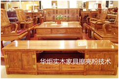 实木家具擦亮剂 红木家具擦亮粉 华炬实木家具擦亮粉是针对硬木家具清洁保养开发的一种新技术、新产品。在日常生活、生产中经常遇到用具、用品、用料放置久了,会被氧化变旧,常用的擦亮方法是用打磨,化学溶剂清洗,酸洗等方法。这些方法有可能产生二次污染,不环保、公害大、成本过高、效果不够明显。该华炬实木家具擦亮粉采用食品级原料组成,配方科学、技术先进,使用后能使得被氧化变旧擦亮用具、用品、用料还原增亮变新。使用时将该华炬实木家具擦亮粉用清水按照一定比例稀释后即可擦洗硬木家具,清洁后不需要再用其他东西保护。该华炬家具擦亮粉擦亮效率高、效果显著,食品级原料安全可靠、制造工艺简单,是实木家具清洁养护的一代新技术、新产品,是宾馆、酒店、茶楼、富贵家庭高档实木家具的清洁养护的首选。现该实木家具擦亮粉技术配方、生产工艺、使用方法如下供研究交流参考:(571411 281445)